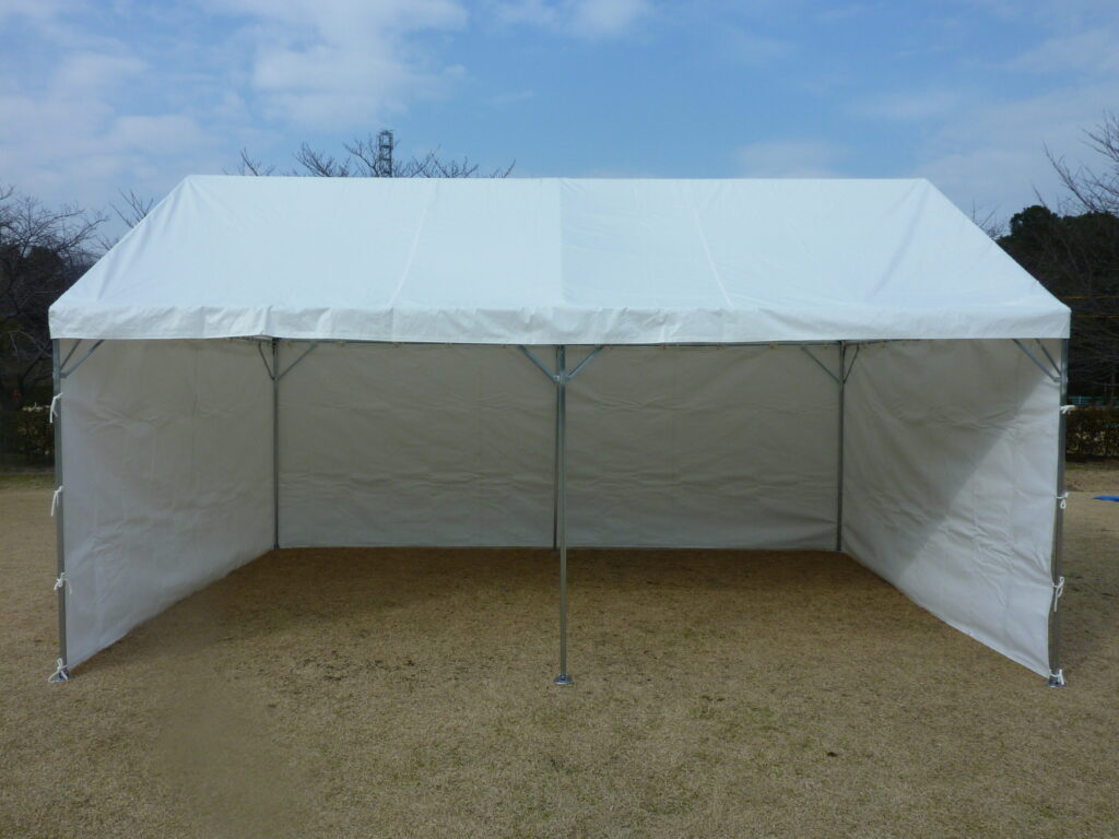 3方向幕を張ったり4方向に幕を張ったりするときに使用します。控室や受付、本部等壁があった方がいい時に利用されています。ターポリンが一般的ですが、透明ビニールや紅白幕(青白幕)もあります。